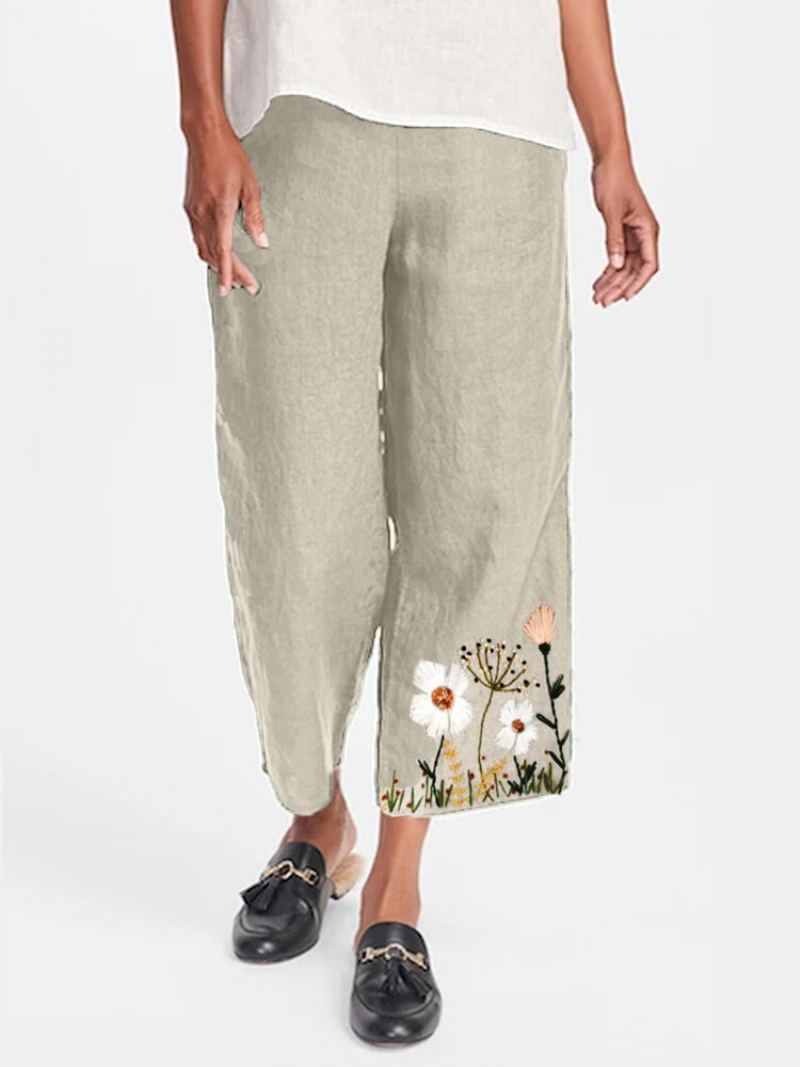 Neformální Kalhoty S Květinovou Výšivkou Pro Ženy