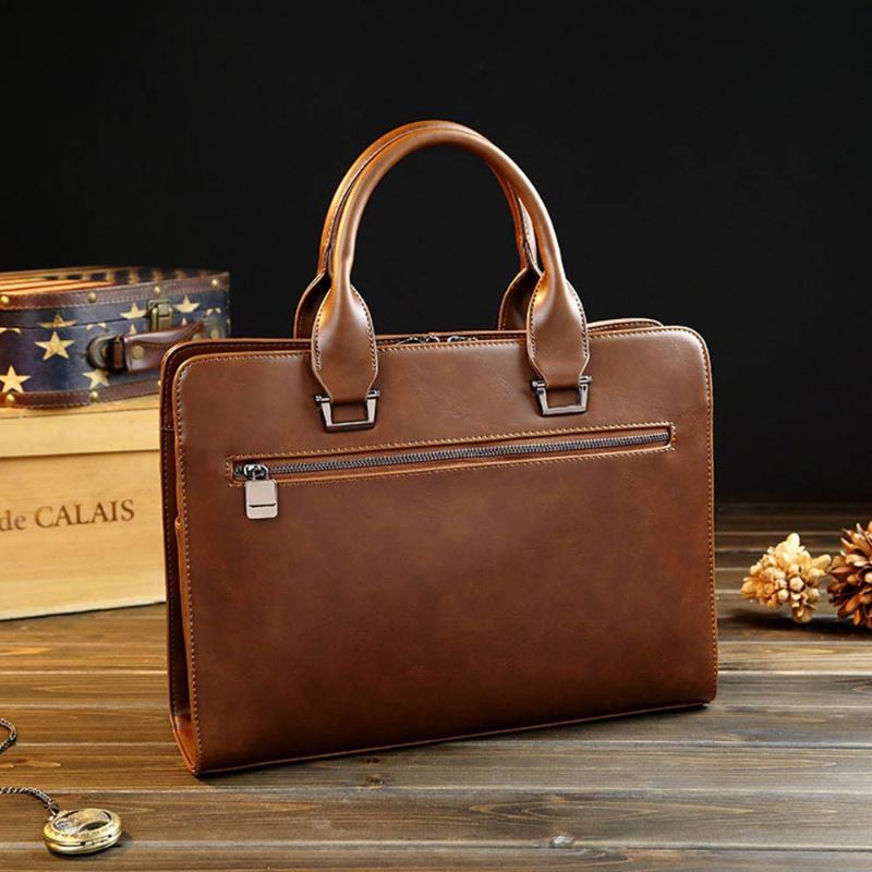 Taška Přes Rameno V Obchodním Stylu Speciálně Navržená Pro Muže K Instalaci Souborů Potřebných Pro Každodenní Kancelářskou Práci, Vyrobená Z Prvotřídního Koženého Materiálu, Taška Přes Rameno Je Pohodlná Se Zesíleným Páskem Na Ruku A Hladkou Přezkou Na Zip, Která Je Textura S Logem Značky.