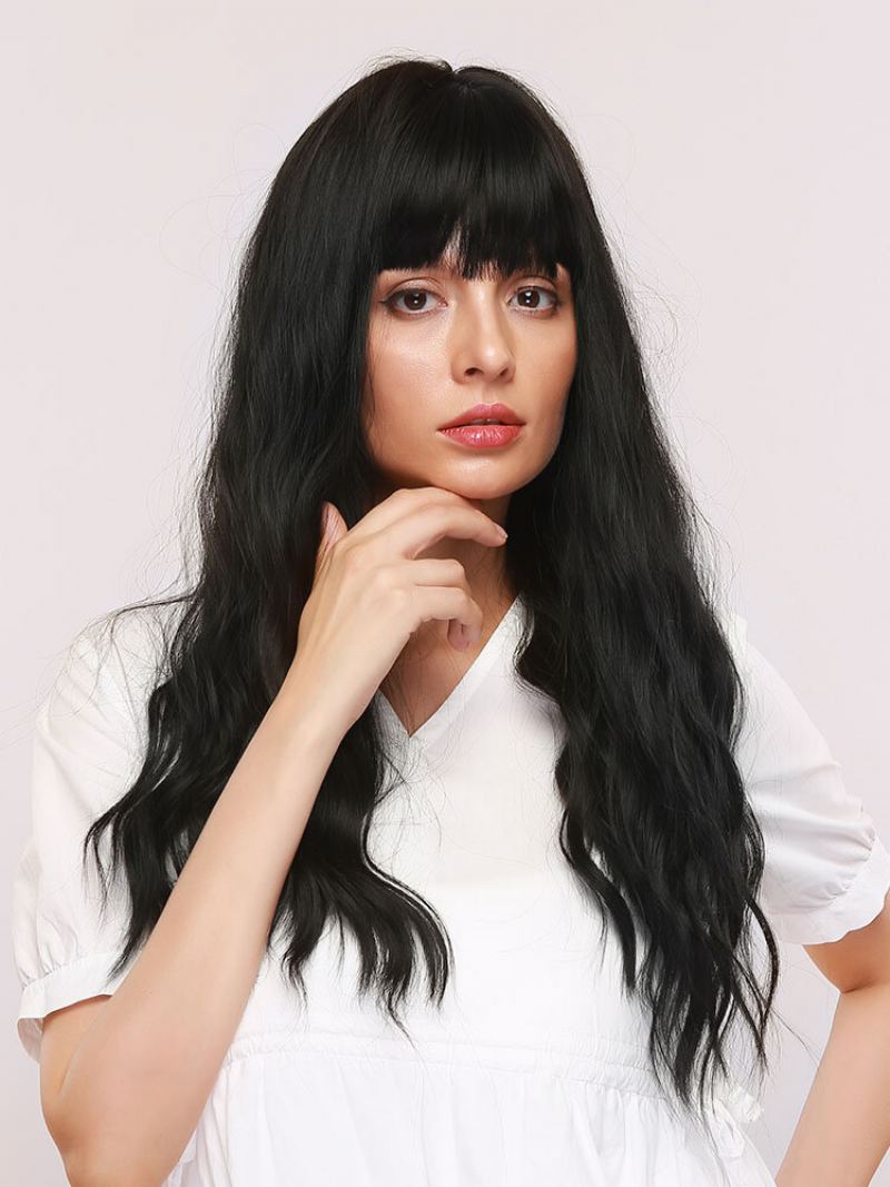 Ofina 28 Palců Přírodní Černá Dlouhé Kudrnaté Vlasy Jemný Temperament Syntetická Paruka S Malým Objemem