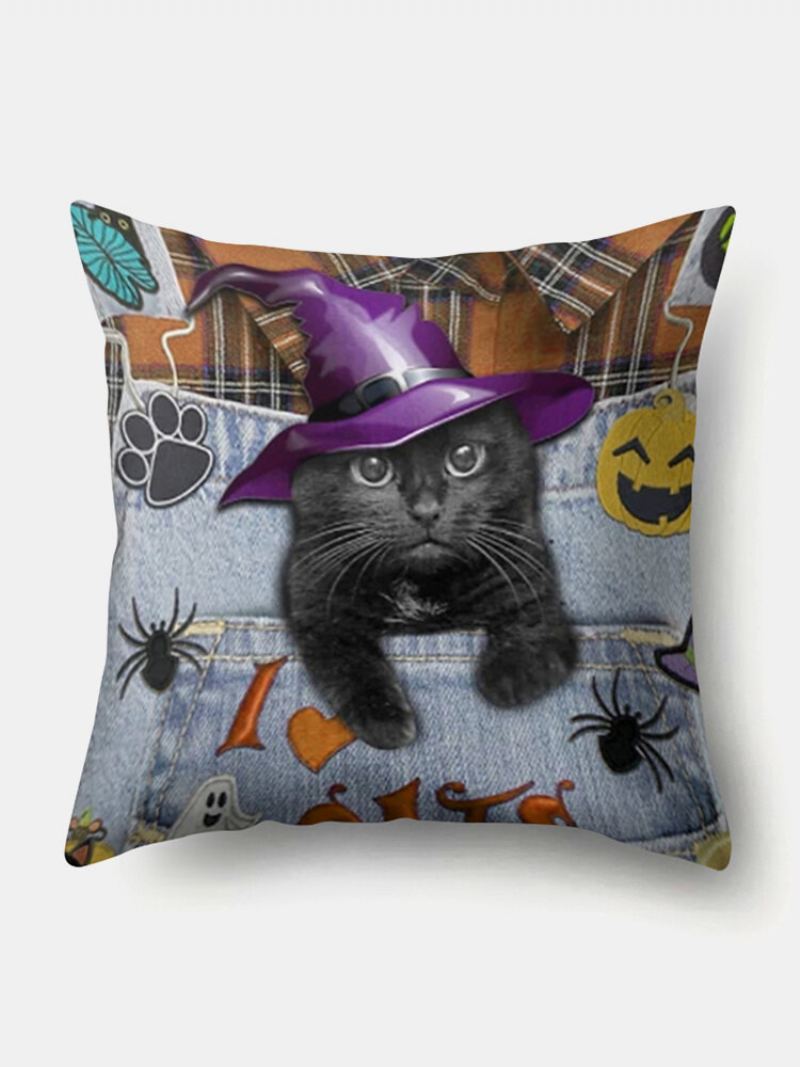 Personalizované Kostkované Dopisy Kočičí Vzor Povlečení Na Polštář Domácí Pohovka Art Decor Throw Povlak Na