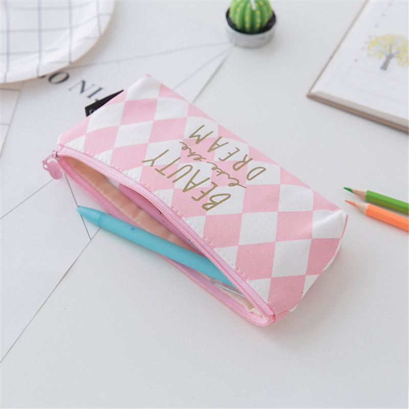 Plátěné Pouzdro Na Tužky Školní Taška Velkokapacitní Krabička Na Psací Potřeby Kapsička Na Make-up Kosmetická Taštička