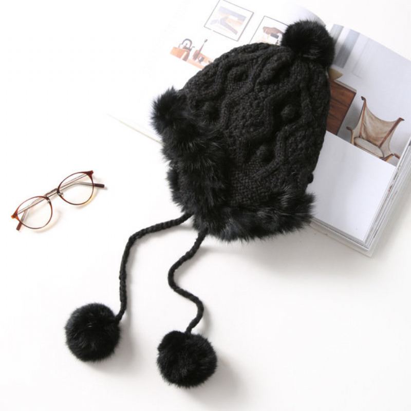 Pletená Vlněná Čepice Nové Chrániče Sluchu Pom Pom & Dekor Se Stahovací Šňůrkou
