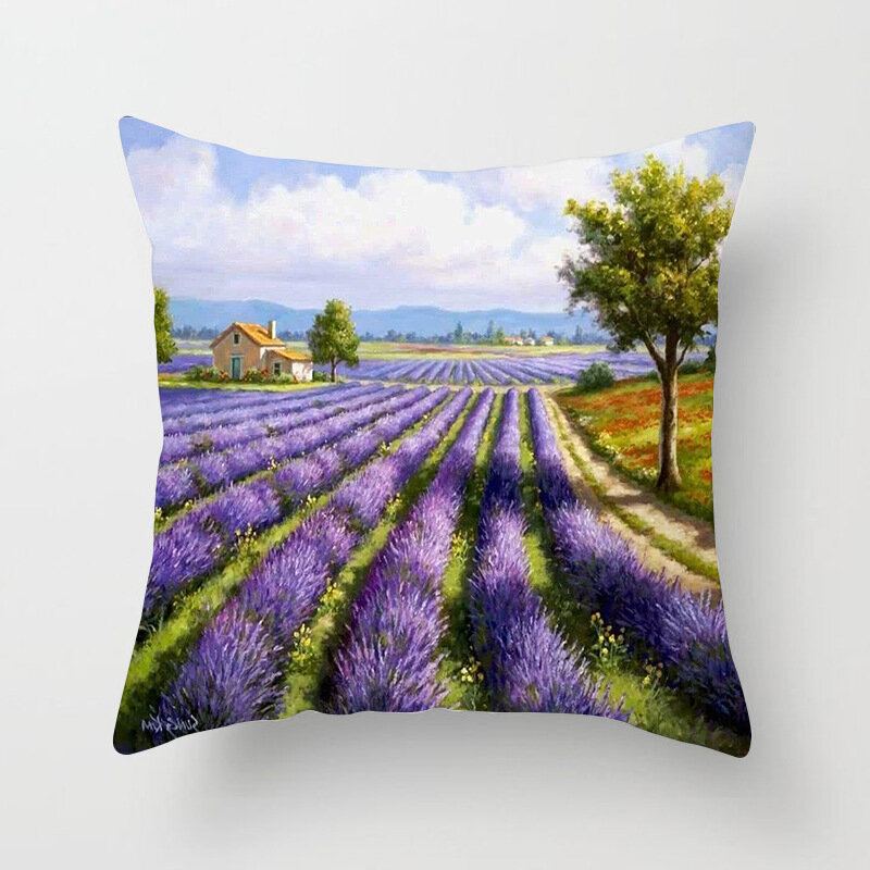 Povlaky Na Polštáře Olejomalba Levandule Fialové Květy Dekorativní Na Home Decor Čtvercové Na Z Bavlny 18x18 Palců