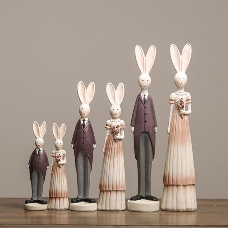 Dekorace Pro Zaječí Páry Vyrobené Z Vysoce Kvalitního Pryskyřičného Materiálu, S Tvarem Králíka A Párovým Designem, Krásné A Roztomilé, Různé Styly Splňují Různé Požadavky, Včetně Svatebních, Kuchařských, Smokingových, Sluha A Květinových Dětí , Je Vhodné Umístit Do Obývacího Pokoje Nebo Kavárny
