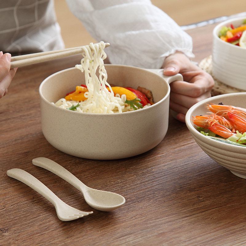 Pšeničná Sláma Instantní Nudle Krabička Na Oběd S Víkem Mísa Hůlky Lžíce Vidlička Sada Nádobí