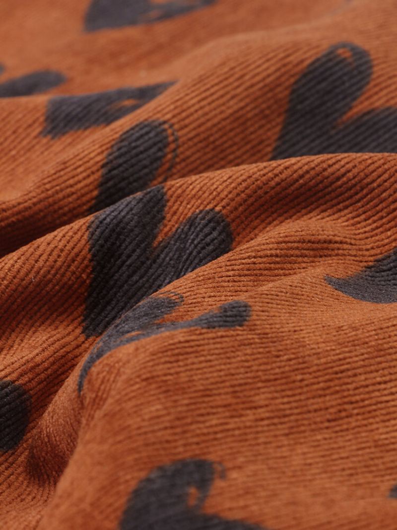 Retro Coduroy Patchwork Velkokapacitní Kabelka Crossbody S Potiskem Srdce