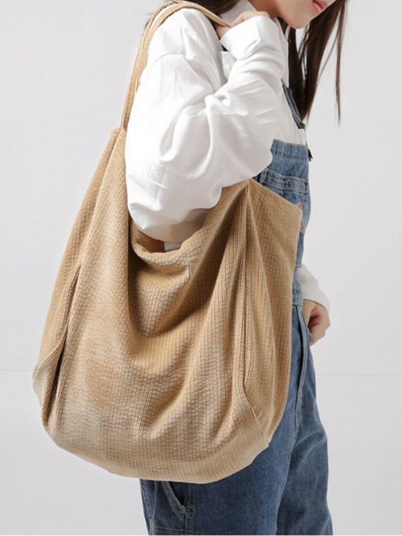 Retro Coduroy Patchwork Velkokapacitní Kabelka Tote