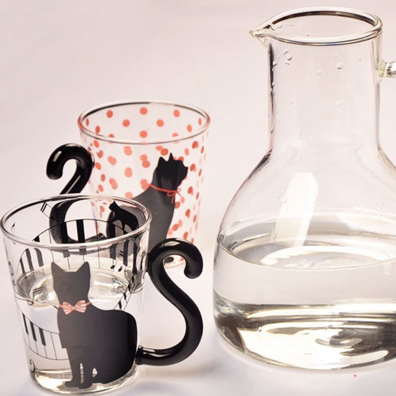 Roztomilý Kreslený Skleněný Šálek Pro Kočku Čaje Hrnek Na Kávu Mléko Music Dots Home Office