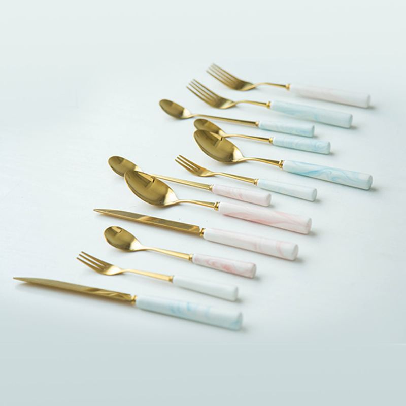 Sada Kůlů Vidličky A Lžíce V Nordickém Stylu Z Nerezové Oceli Třídílná Mramorování