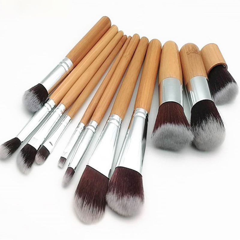 Sada Nástrojů Pro Kosmetické Štětce Na Make-up S Bambusovou Rukojetí 11ks