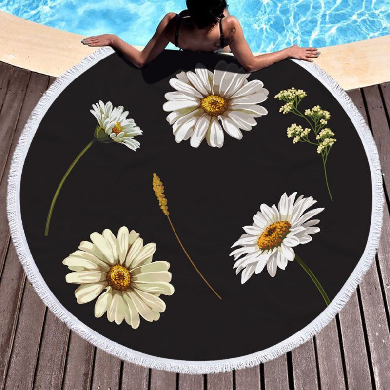 Sedmikráska Slunečnicová Kulatá Deka Na Plážovou Osušku Hawaii Havajská Tropická Velká Mikrovlákno Terry Beach Roundie Palm Circle Piknikový Koberec Podložka Na Jógu S Třásněmi