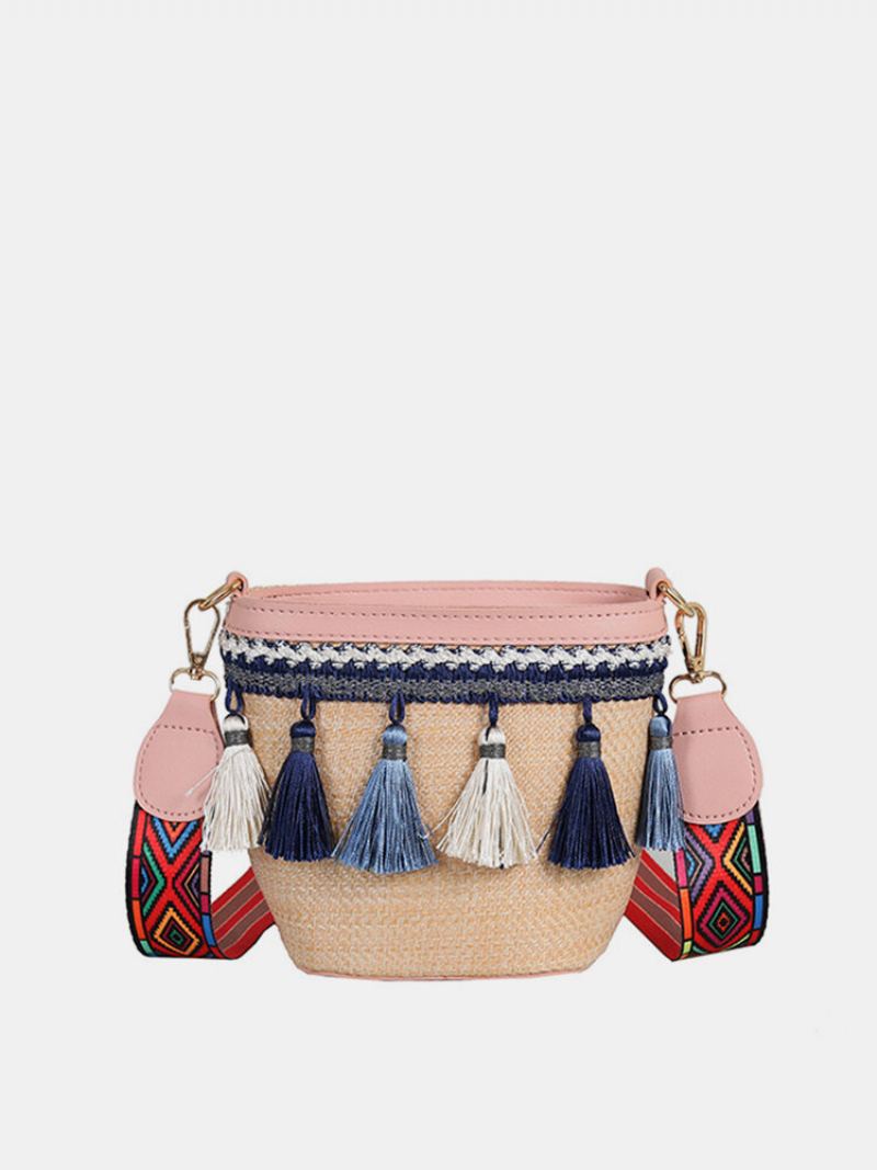 Slaměný Střapec Bucket Bag Taška Přes Rameno Pro Ženy