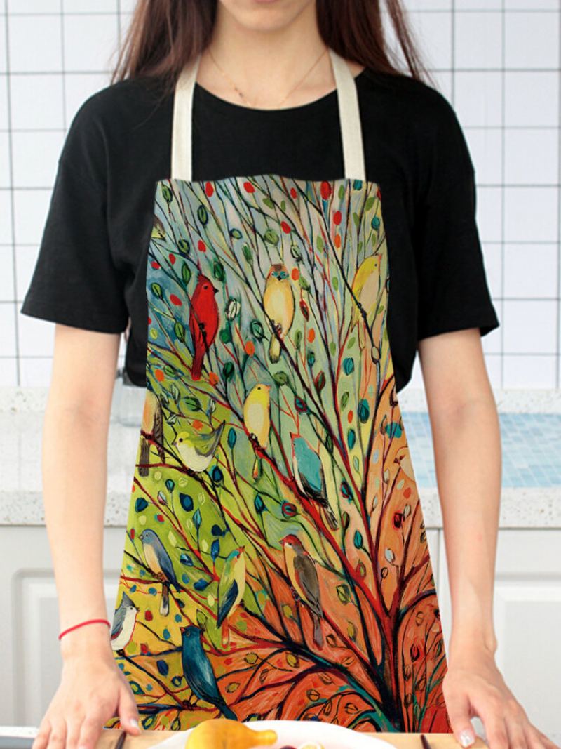 Strom A Ptáci Malba Vzor Čištění Barevné Zástěry Domácí Vaření Kuchyňská Zástěra Kuchařka Nosit Bavlněné Povlečení Bryndáčky Pro Dospělé