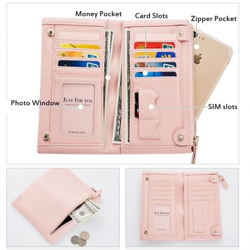 Stylové Pouzdro Na Telefon S Dlouhou Peněženkou Z Pu Kůže V Barvě Candy Pro Ženy