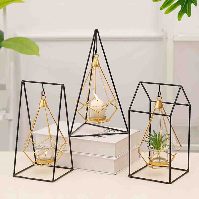 Svícen Nordic Ins Geometrický Kovaný Závěsný Moderní Bytový Dekor Stolní Svíčky Střelecké Rekvizity Zlatá A Černá