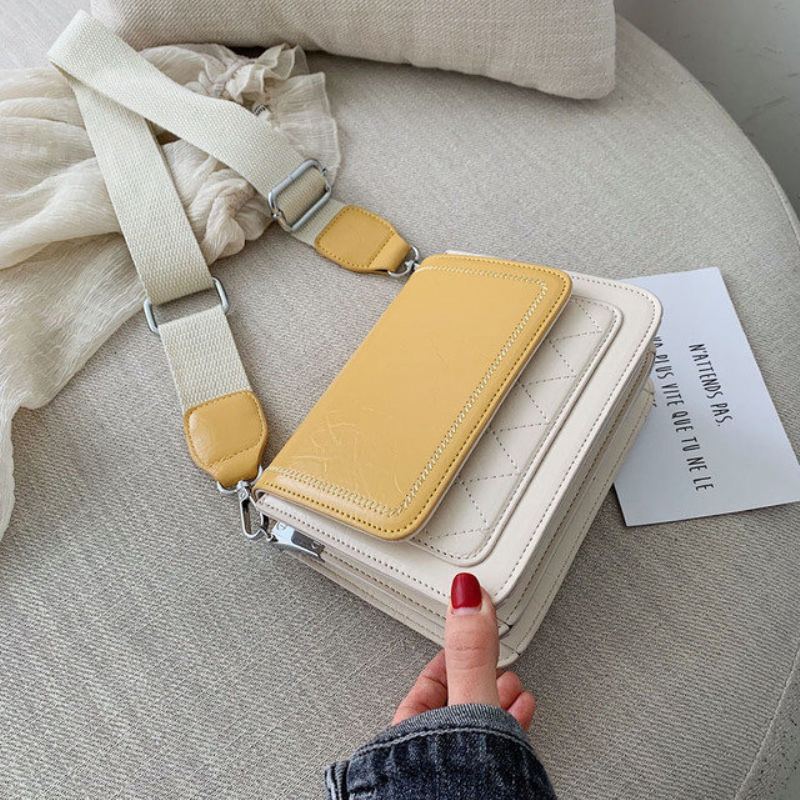 Taška Dámská Nová Móda Širokopásmová Přes Rameno Diagonální Lingge Šicí Nit Hit Barva Malá Čtvercová