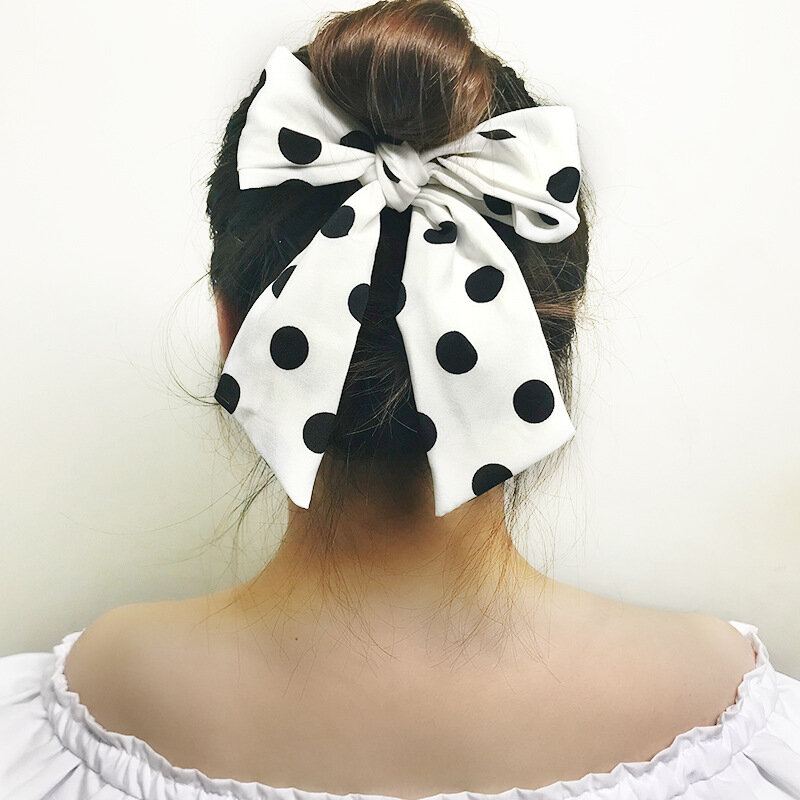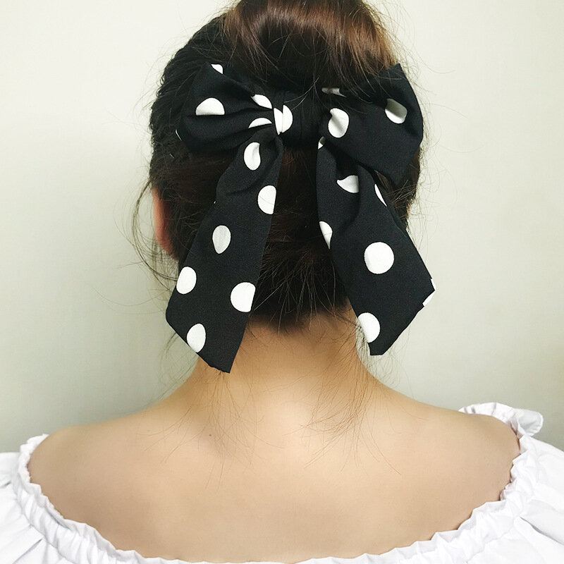 Temperament Puntíkatý Šifon Motýlek Spona Do Vlasů Culík Šála Elastické Provazce Do Potisk Stuha Pásky Do