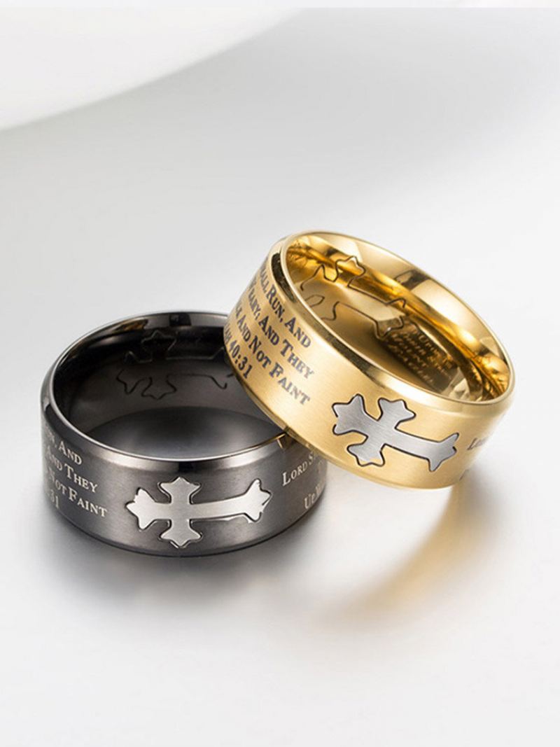 Trendy Jednoduchý Vzor Křížových Písmen Kruhový Prsten Z Titanové Oceli