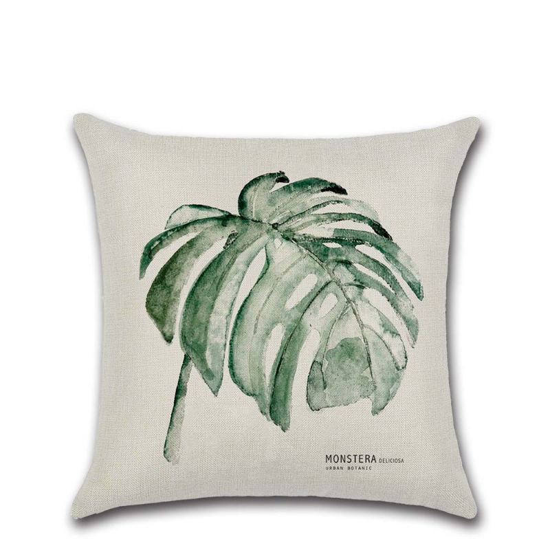 Tropické Rostliny Pouzdro Na Polštář Polyester Povlak Na Dekorativní Domácí Na Do Auta Zelené Listy Motiv Hodit Čtverec 45*45cm