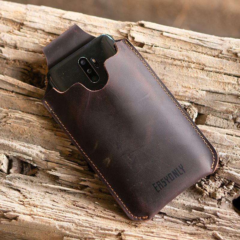 Ultratenká Pravá Hovězí Kůže Kapsy Na Mobilní Telefon Sportovní Harley Taktické Pouzdro Na Nosný Opasek Vertikální Pro Muže