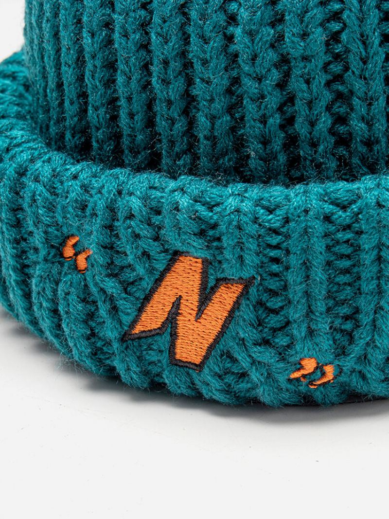 Unisex Akrylové Pletené Jednobarevné Dopisní Vyšívání Univerzální Hřejivý Čepice Bez Okraje Landlord Cap Skull Cap