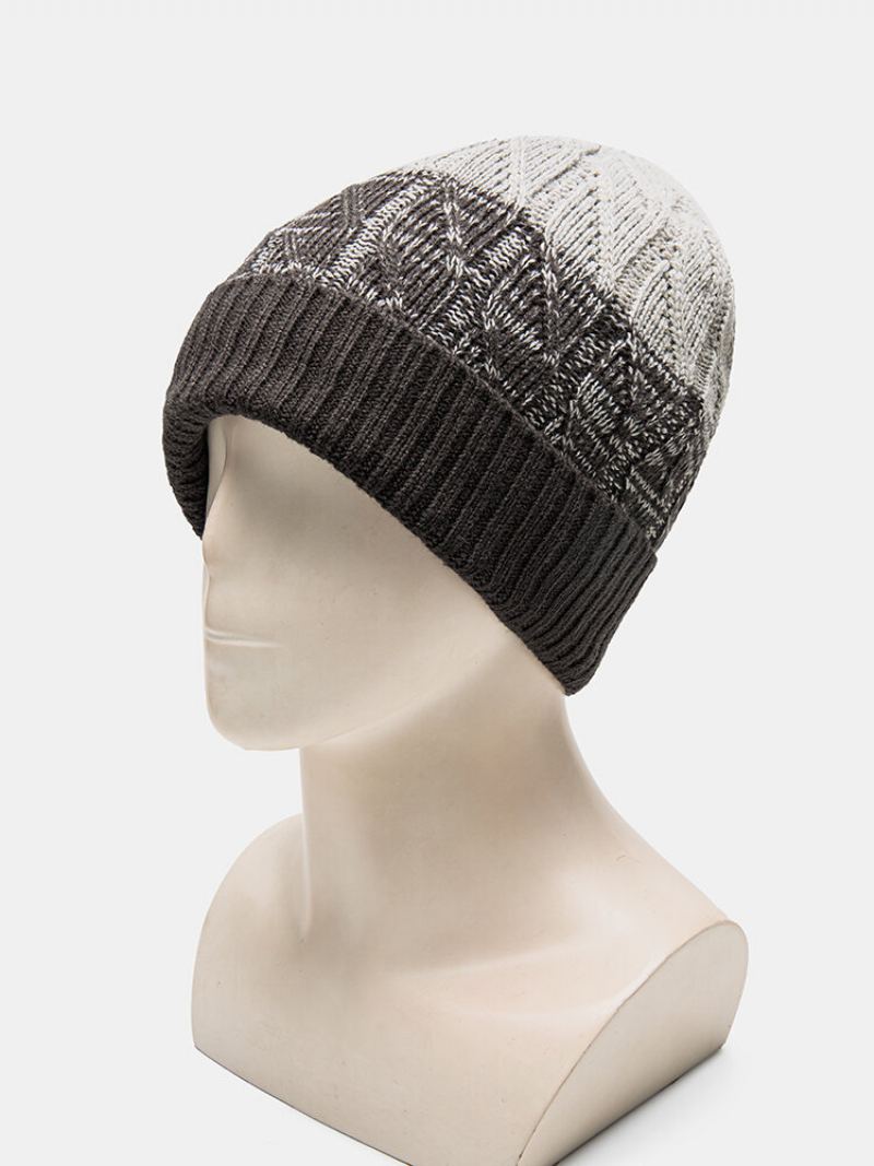 Unisex Akrylové Smíšené Barvy Pletené Plus Sametové Pruhované Žakárové Zesílené Teplo Čepice Bez Okraje