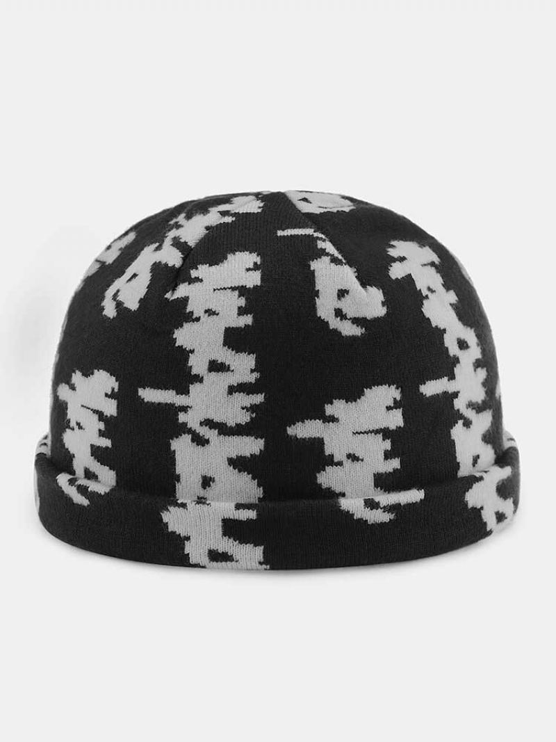 Unisex Pletené Barva Kontrast Graffiti Žakár Hřejivý Móda Čepice Bez Okrajů Kšiltovka Landlord Cap Skull Cap