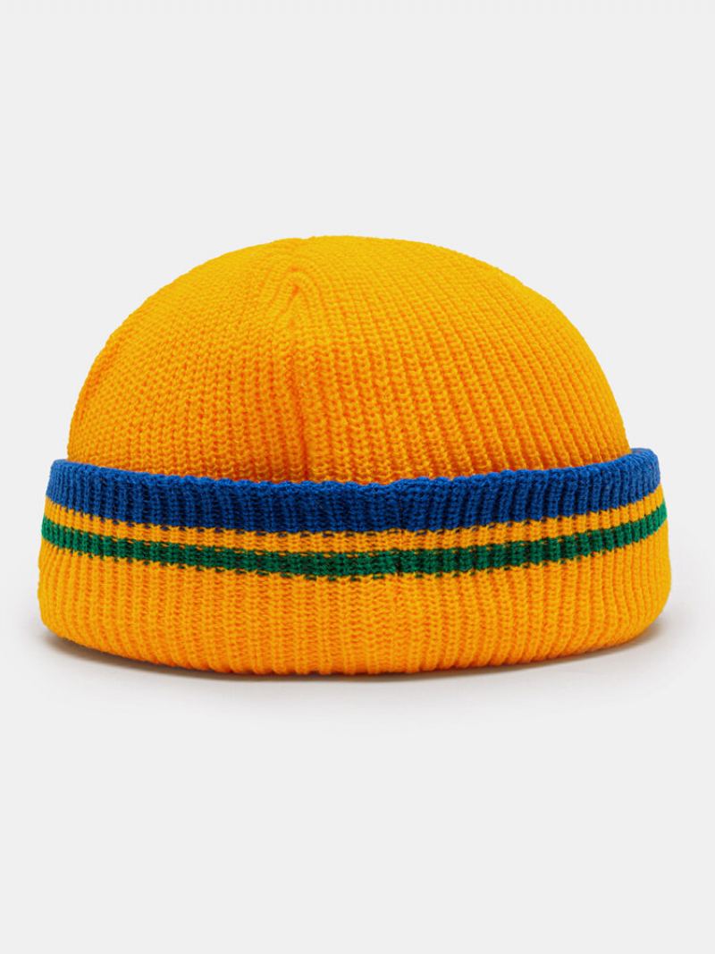 Unisex Pletené Jacquard Barevně Sladěné Pruhované Písmeno Výšivka Hřejivost Čepice Bez Okraje Landlord Cap Skull Cap