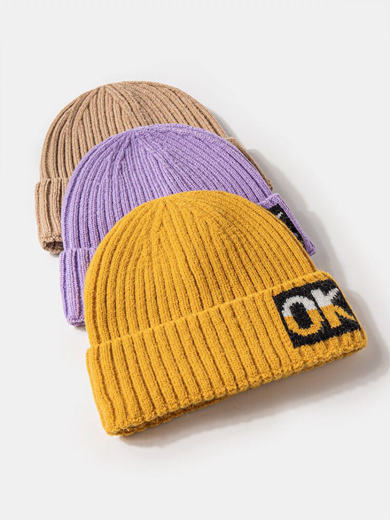 Unisex Pletené Jednobarevné Letter Jacquard Bez Okrajů Lemování Venkovní Teplo Bez Čepice Landlord Cap Skull Cap