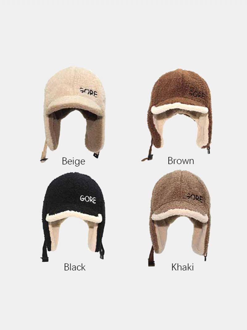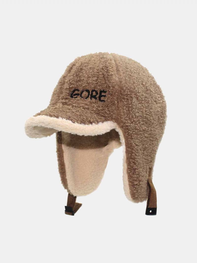 Unisex Plyšová Písmena Z Jehněčí Vlny Výšivka Zesílená Ochrana Uší Podzim Zima Teplý Klobouk Se Zakřiveným Okrajem