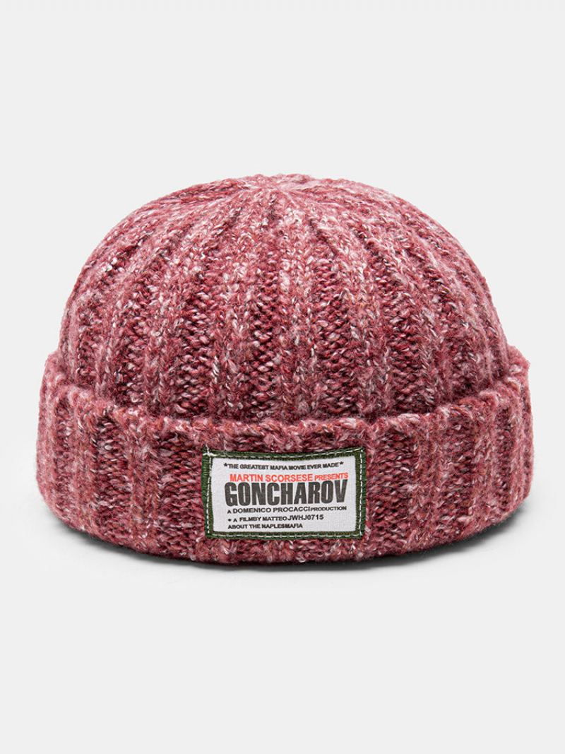 Unisex Smíšené Barvy Pletená Žakárová Dopisní Látková Nášivka Univerzální Zateplení Čepice Bez Okraje Landlord Lebka