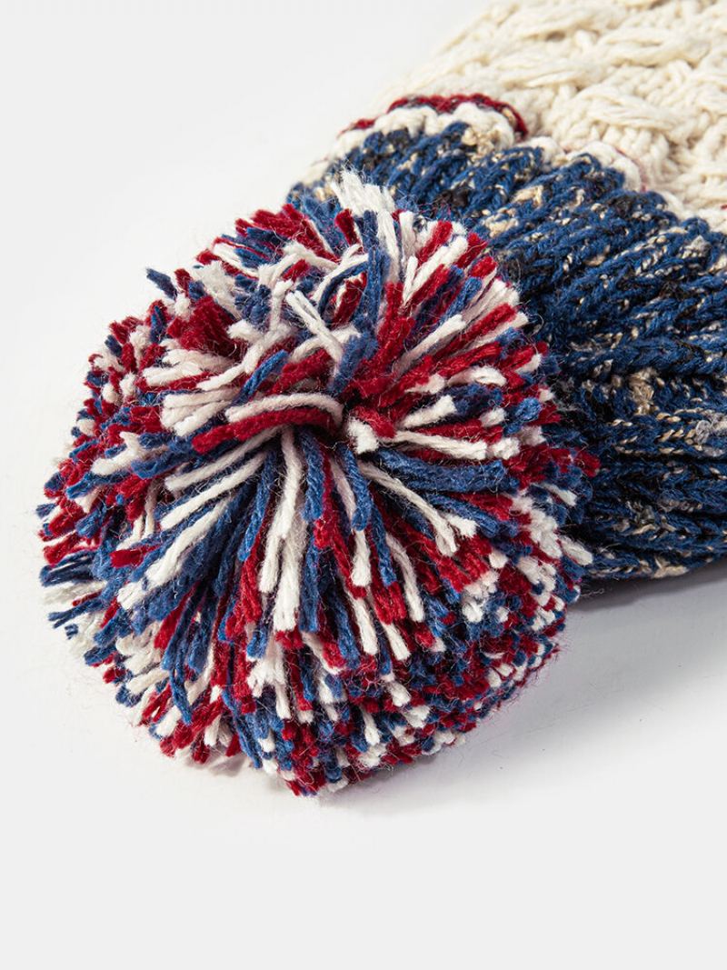 Unisex Smíšené Barvy Pletené Plus Samet Se Zahuštěným Vzorem Twist Kožešina Ball Dekorace Lemování Teplá Čepice Beanie