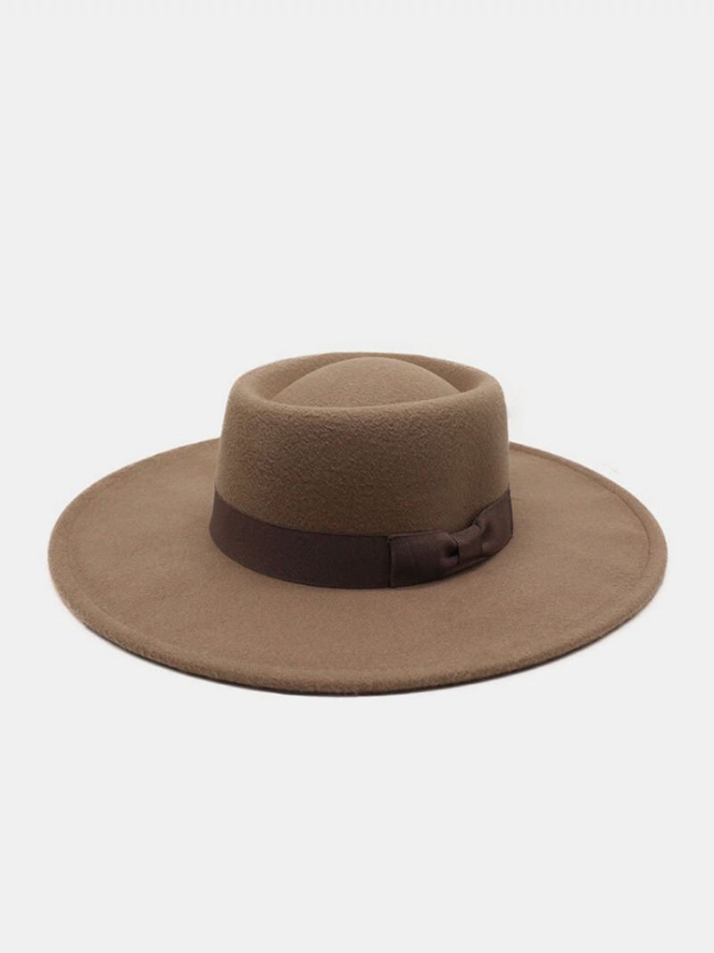 Unisex Vlněná Plsť Jednobarevná Bandáž S Mašlí Dekorace Konkávní Klobouk Fedora
