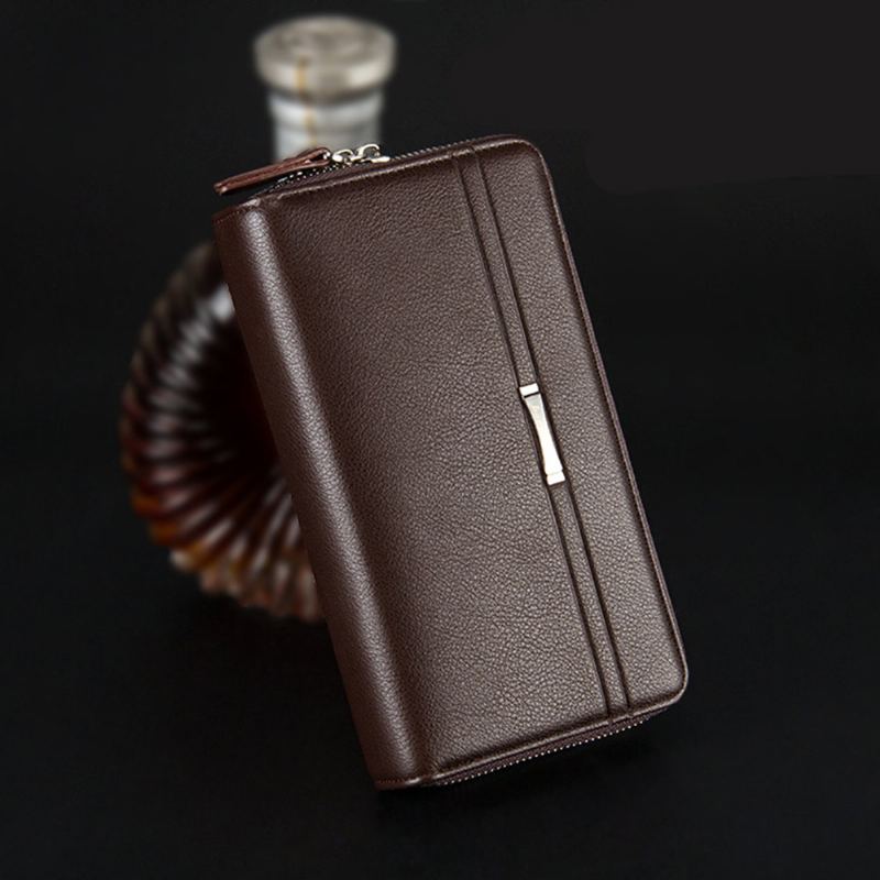 Velkokapacitní Pu Kožená Taška Se Spojkou Peněženka Pro Muže Dvojitý Zip Více Pozic Karet Módní Kabelka Na Telefon