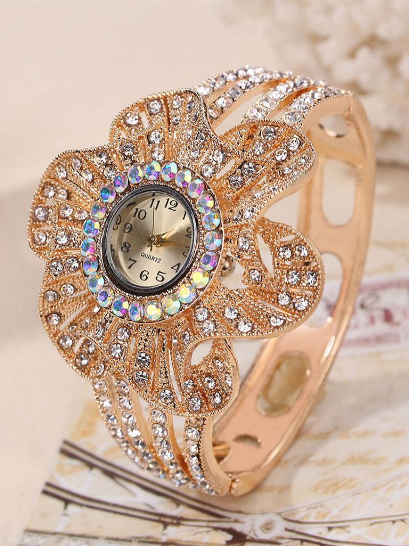 Vintage Geometrický Velký Květinový Disk Náramek Hodinky Osobnost Drahokamu Quartz Náramkové