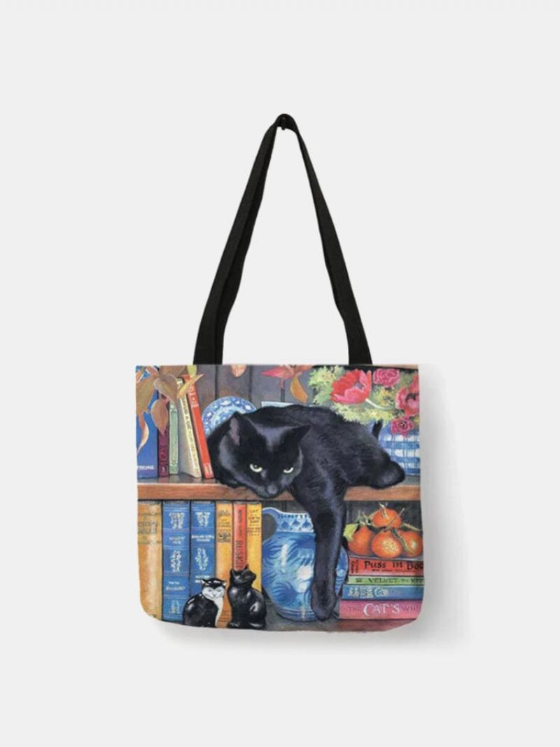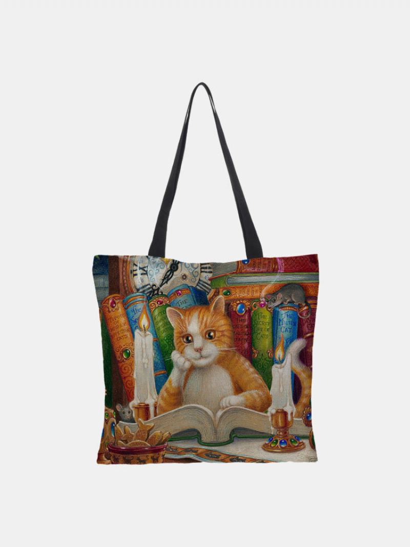 Ženy Plátno Roztomilý Kreslený Olejomalba Kočičí Potisk Vodotěsná Nákupní Taška Přes Rameno Kabelka Tote