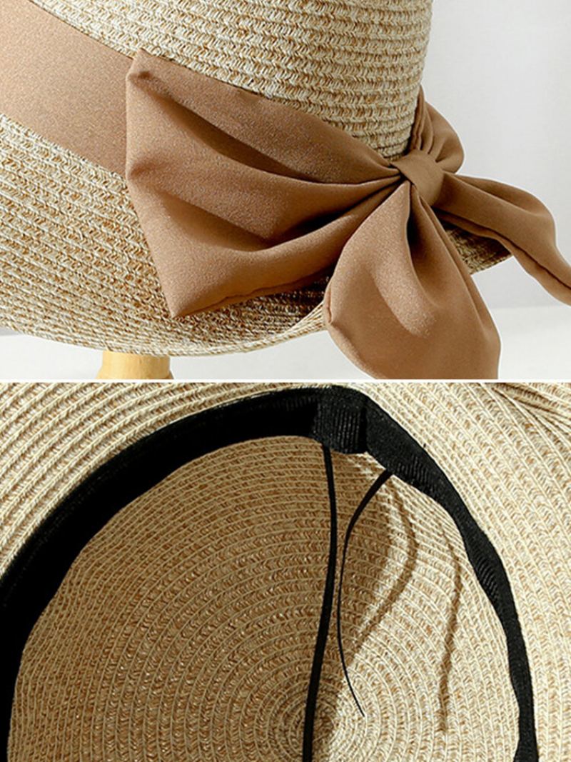 Ženy Sláma Volný Čas Dovolená Všestranný Prodyšný Odstín Big Bow Slaměný Klobouk Tour Beach Bucket Cap