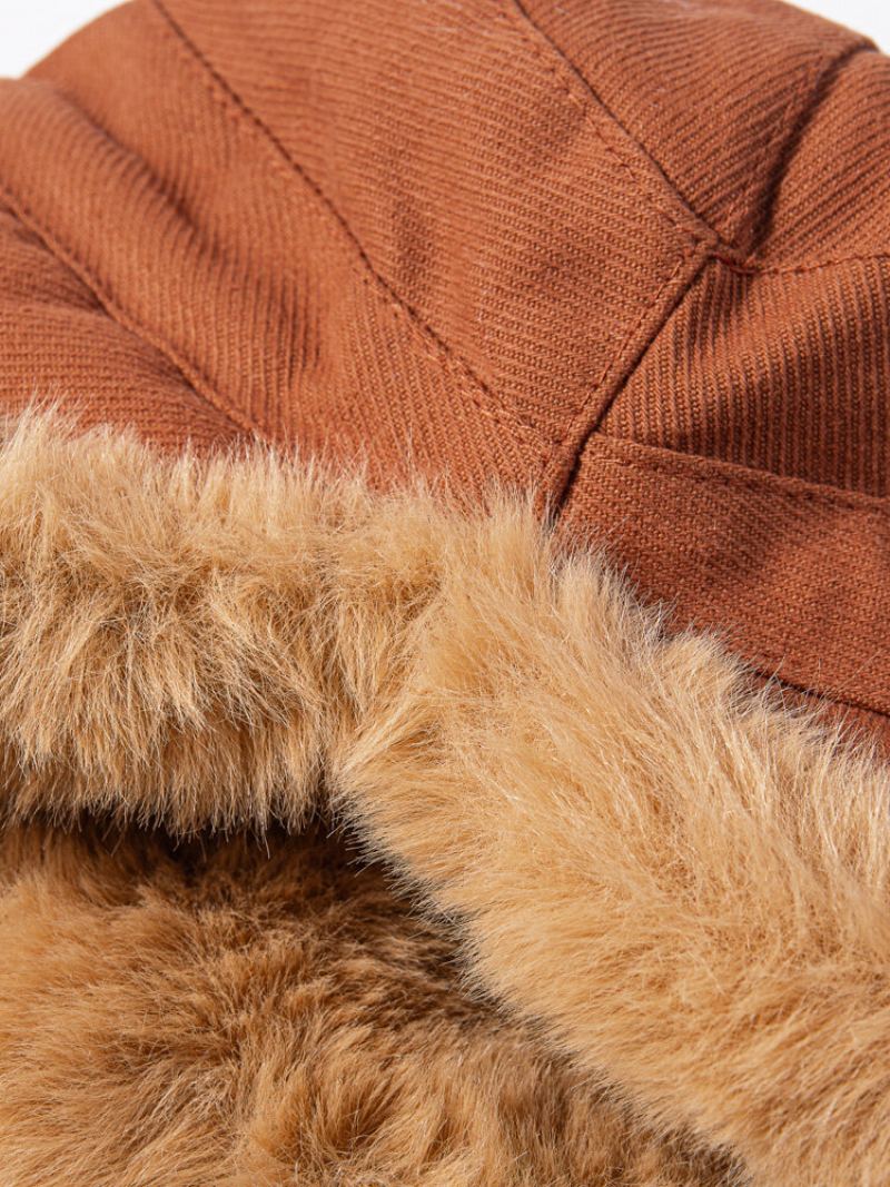 Ženy Umělá Kožešina Plyš Zahuštěné Jednobarevné Šití Krátký Okraj Ochrana Uší Univerzální Zateplená Čepice