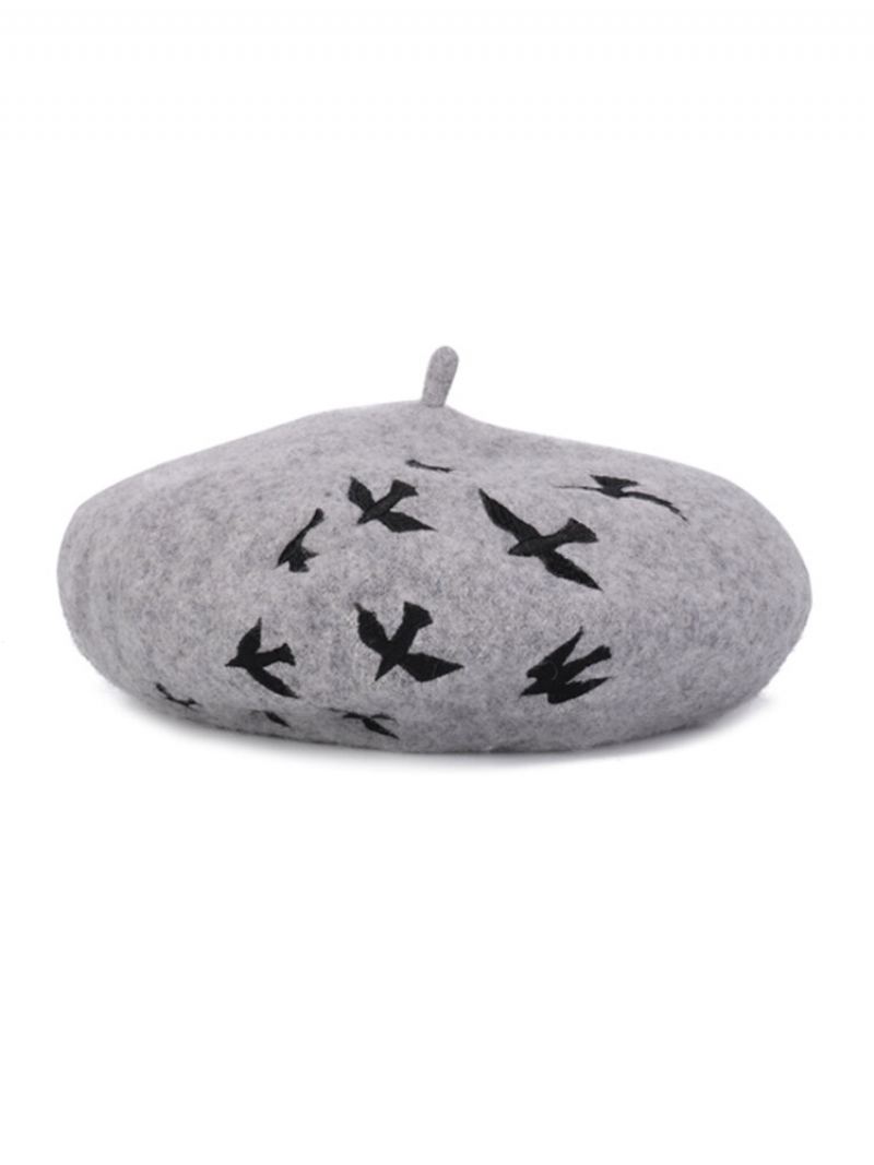 Zimní Vlna Teplé Vyšívané Vlaštovky Vzor Baret Čepice Pro Ženy Neformální Cestování Pletená Malířská