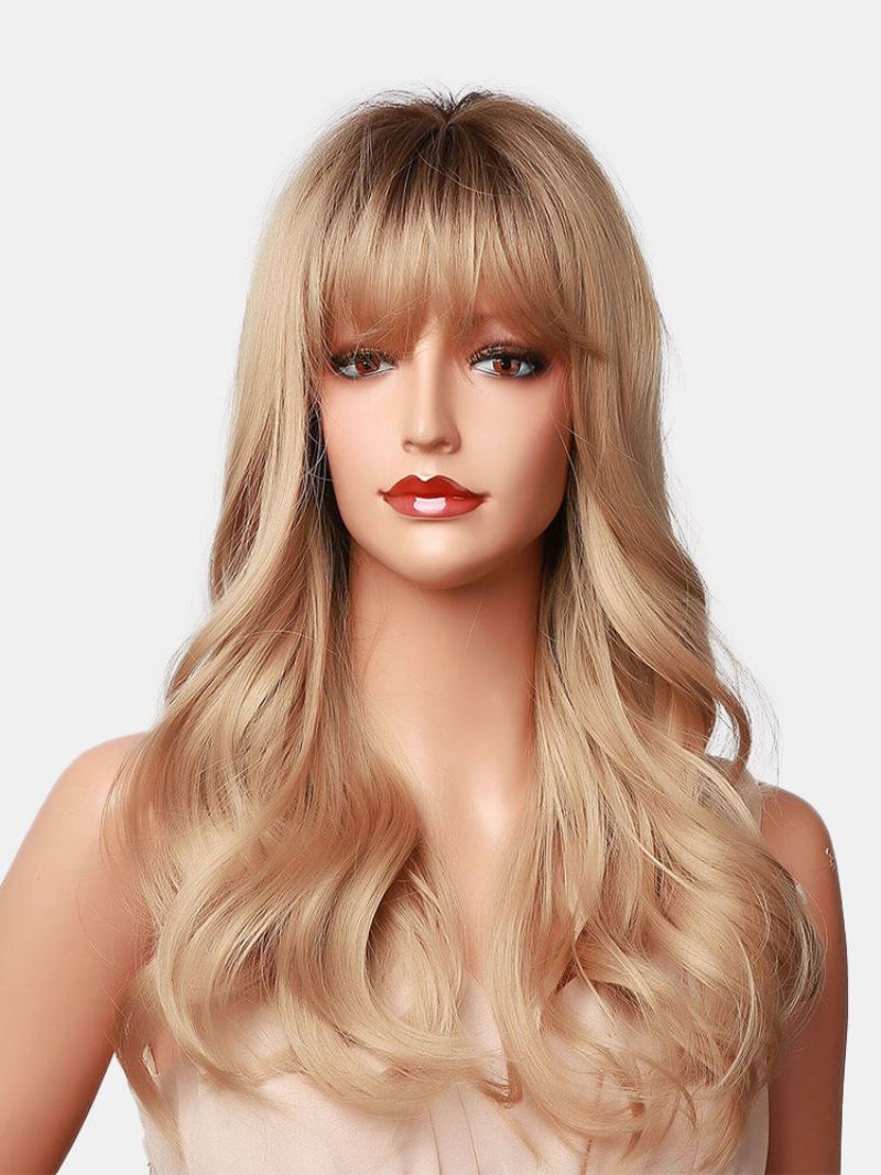 Zlaté Hierarchické Dlouhé Vlnité Kudrnaté Vlasy S Vzdušnou Ofinou Přírodní Kudrnatá Syntetická Paruka Pro Každodenní Použití