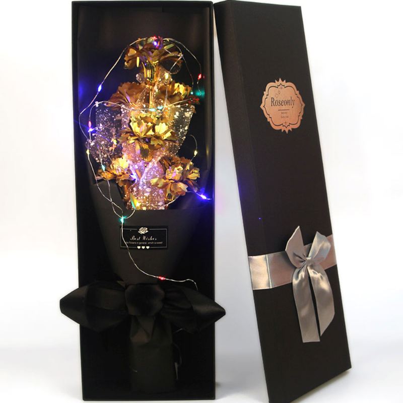 Zlatý Fóliový Karafiát Ke Dni Matek Ke Dni Učitelů Květ S Blikajícím Světlem